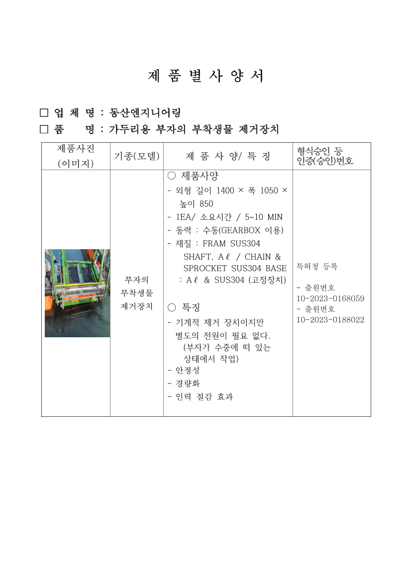 제품사양서(가두리용 부자의 부착생물제거장치).pdf